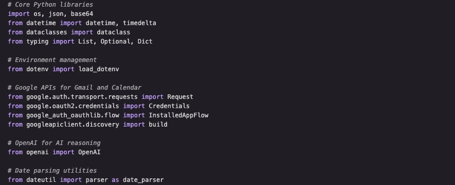 (note: if you are using a different email provider, import appropriate libraries)OpenAI SDK: This is the reasoning engine, the brain of the agent.
