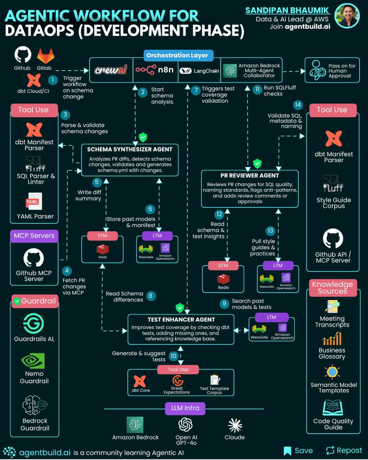 This post expands on an idea for embedding agentic intelligence into the development phase of DataOps, with deeper insights into tool usage, LLM-based agent examples, detailed agent interactions, and concrete integration methods.