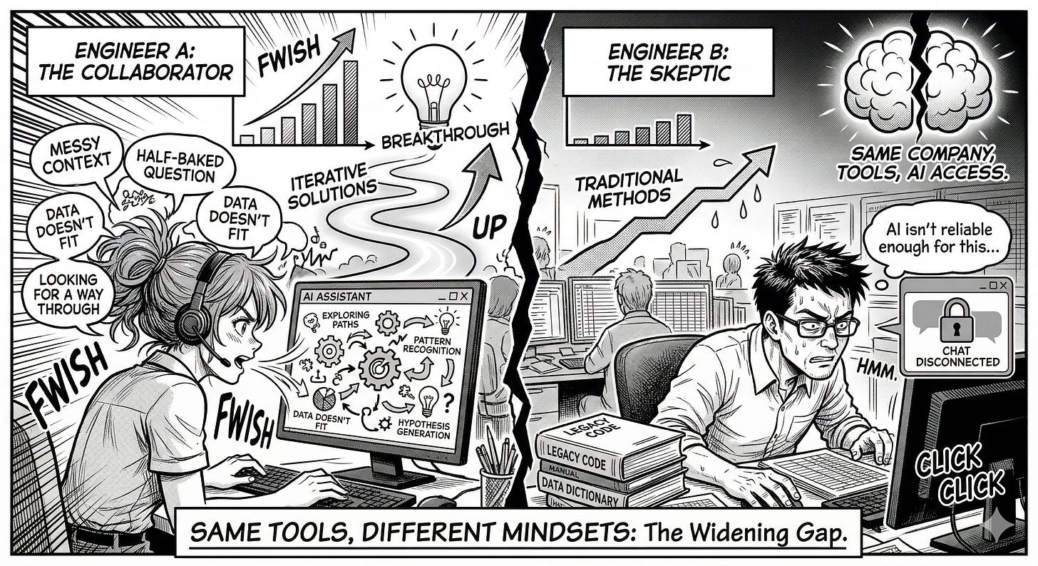 Two engineers. Same company. Same tools available. Same access to AI. Completely different outcomes.