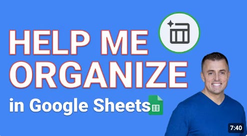 Use Google Sheets' new “Help Me Organize” feature (found in many accounts) to instantly generate formulas, sort data, or build a report with just a sentence.